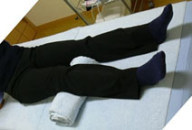A5秒間、膝全体でタオルを押さえつける。(写真1)
