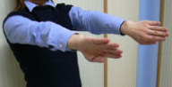 A小指を上げるように掌を外側に向け、5秒間静止。(写真3)